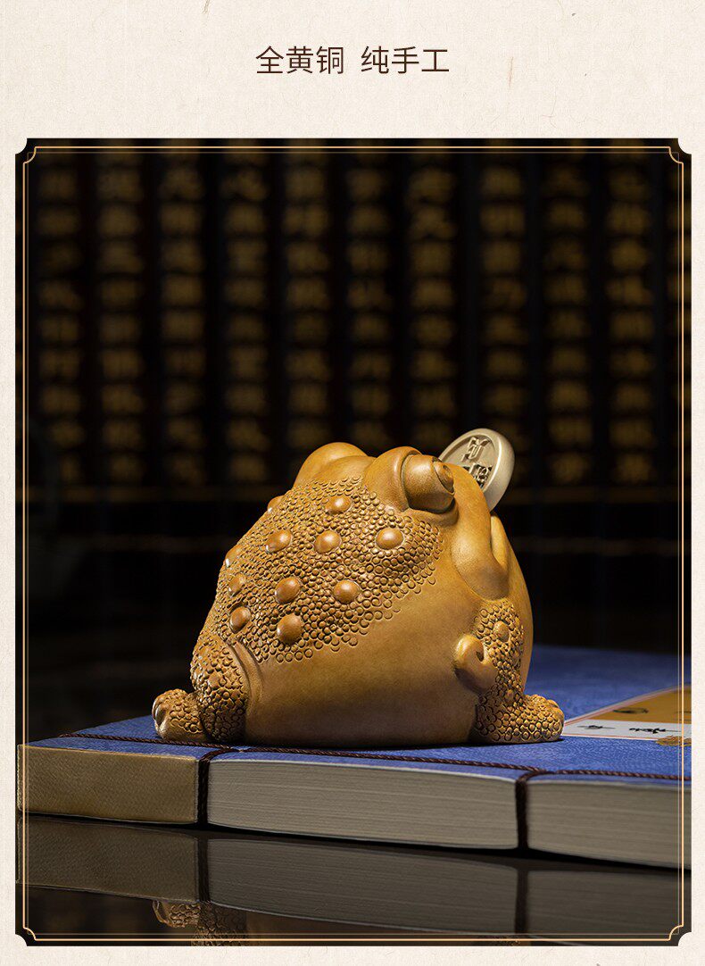 铜师傅黄铜三足金蟾摆件铜工艺品客厅桌面办公室摆饰新店开业礼品