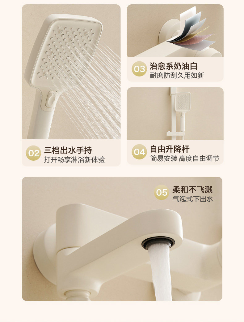 奶油风淋浴花洒套装家用卫生间增压淋浴器浴室简易无顶喷花洒喷头