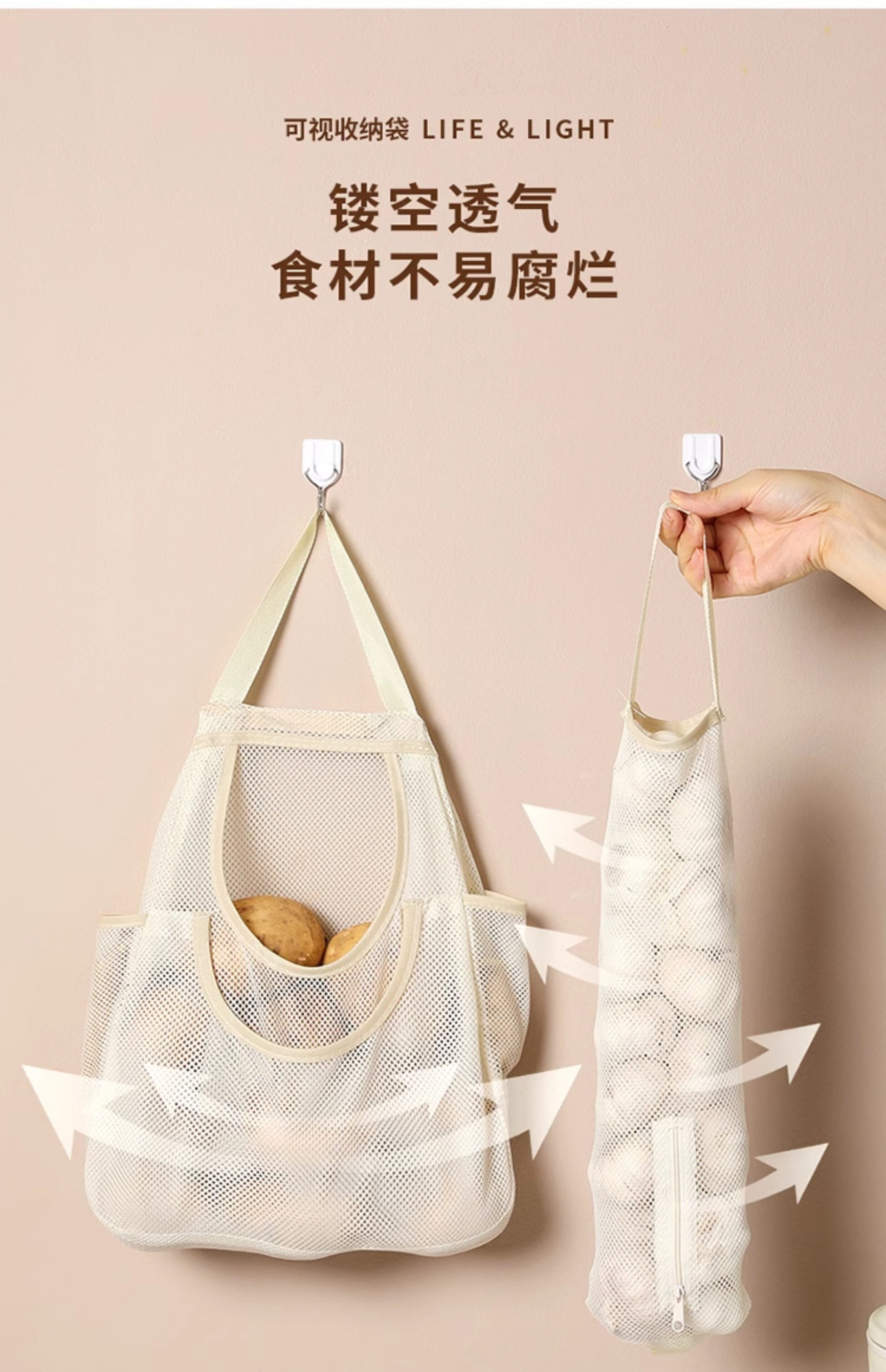 厨房壁挂网格收纳袋多功能果蔬挂袋生姜大蒜储物袋大容量透气网兜