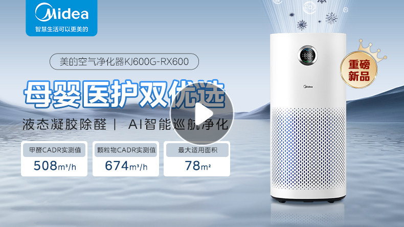 美的空气净化器家用母婴级卧室办公室专用除甲醛异味森林家RX600