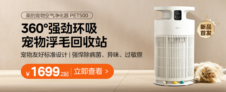 美的空气净化器加湿一体机家用除甲醛数显吸烟杀菌去病毒宠物猫毛