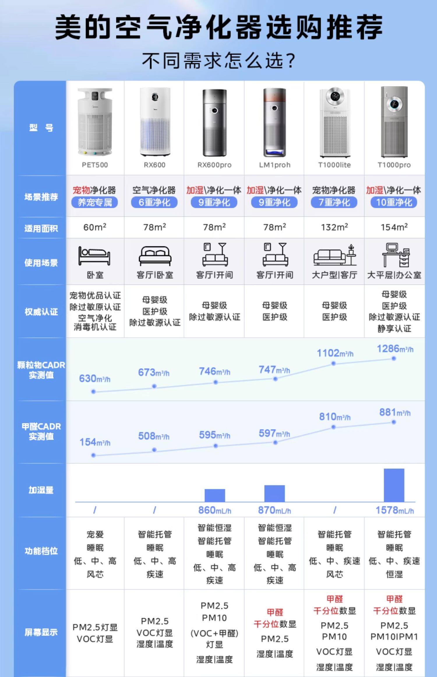 美的空气净化器家用除甲醛烟雾二手烟异味加湿净化一体机RX600Pro