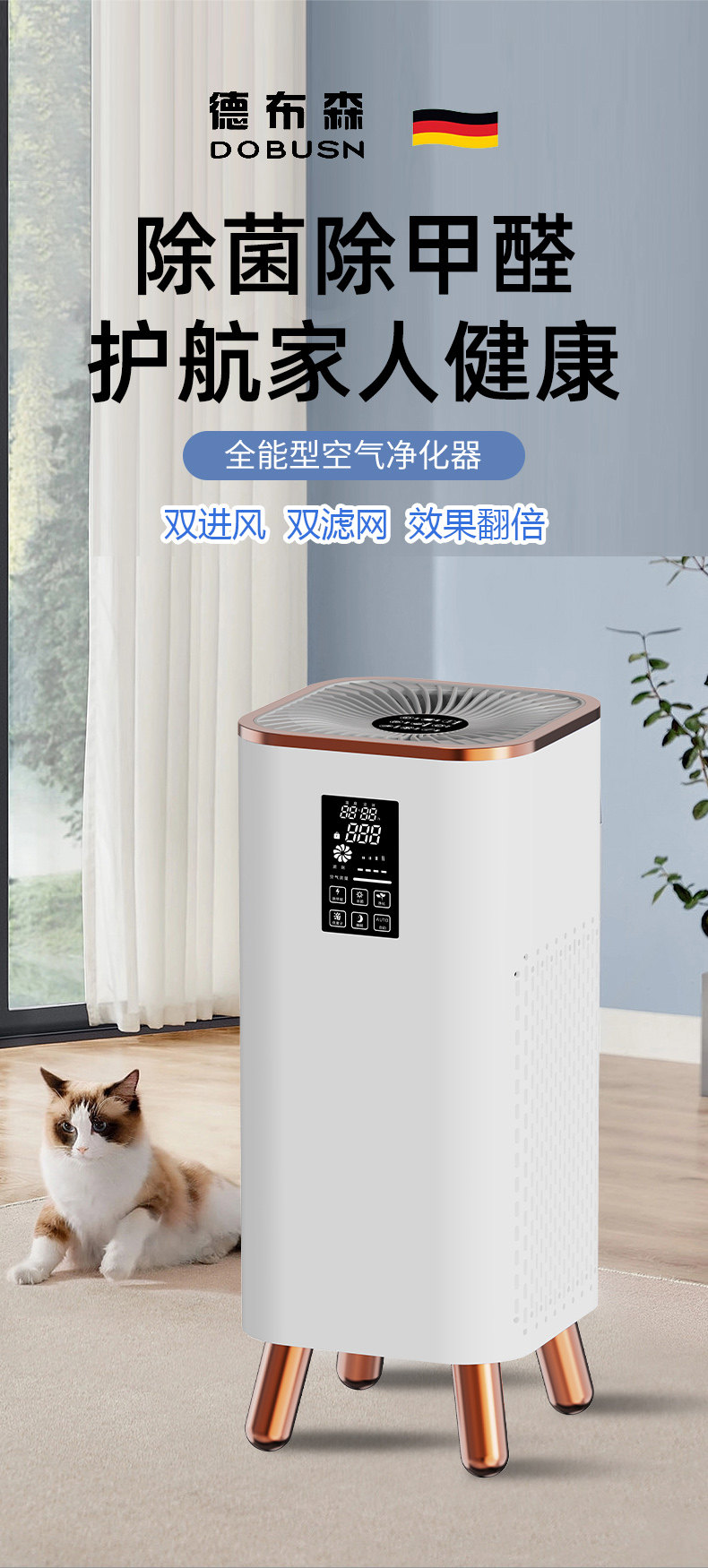 bures百而思吸猫毛空气净化器宠物除臭异味过敏源吸浮毛发净化机