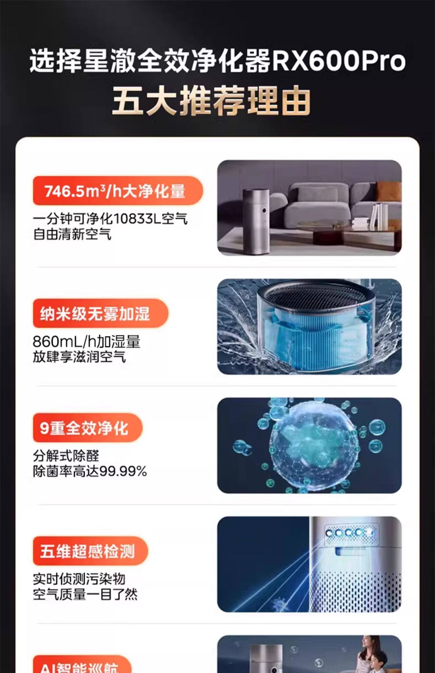 美的空气净化器家用除甲醛烟雾二手烟异味加湿净化一体机RX600Pro