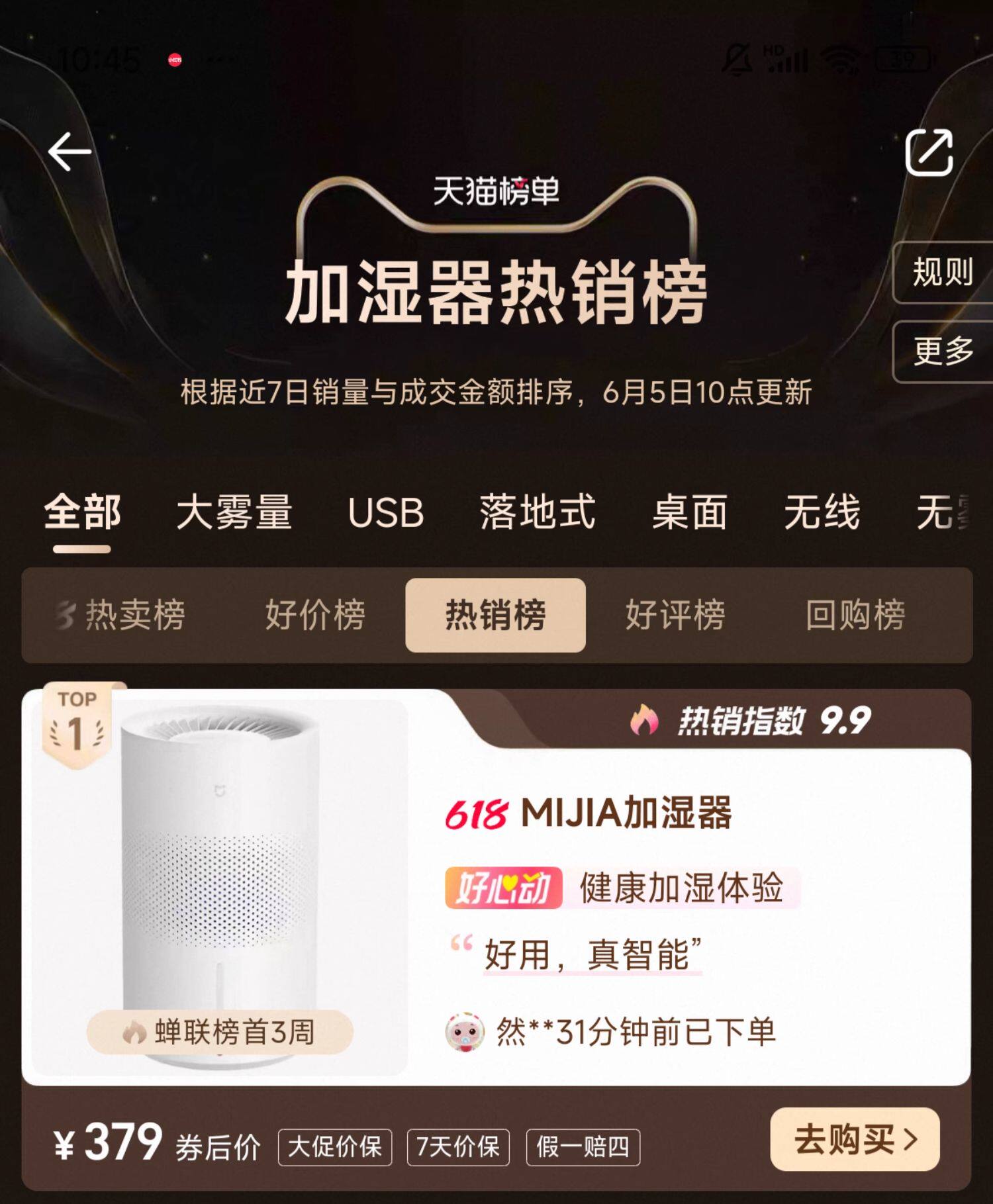 美的空气净化器家用除甲醛烟雾二手烟异味加湿净化一体机RX600Pro