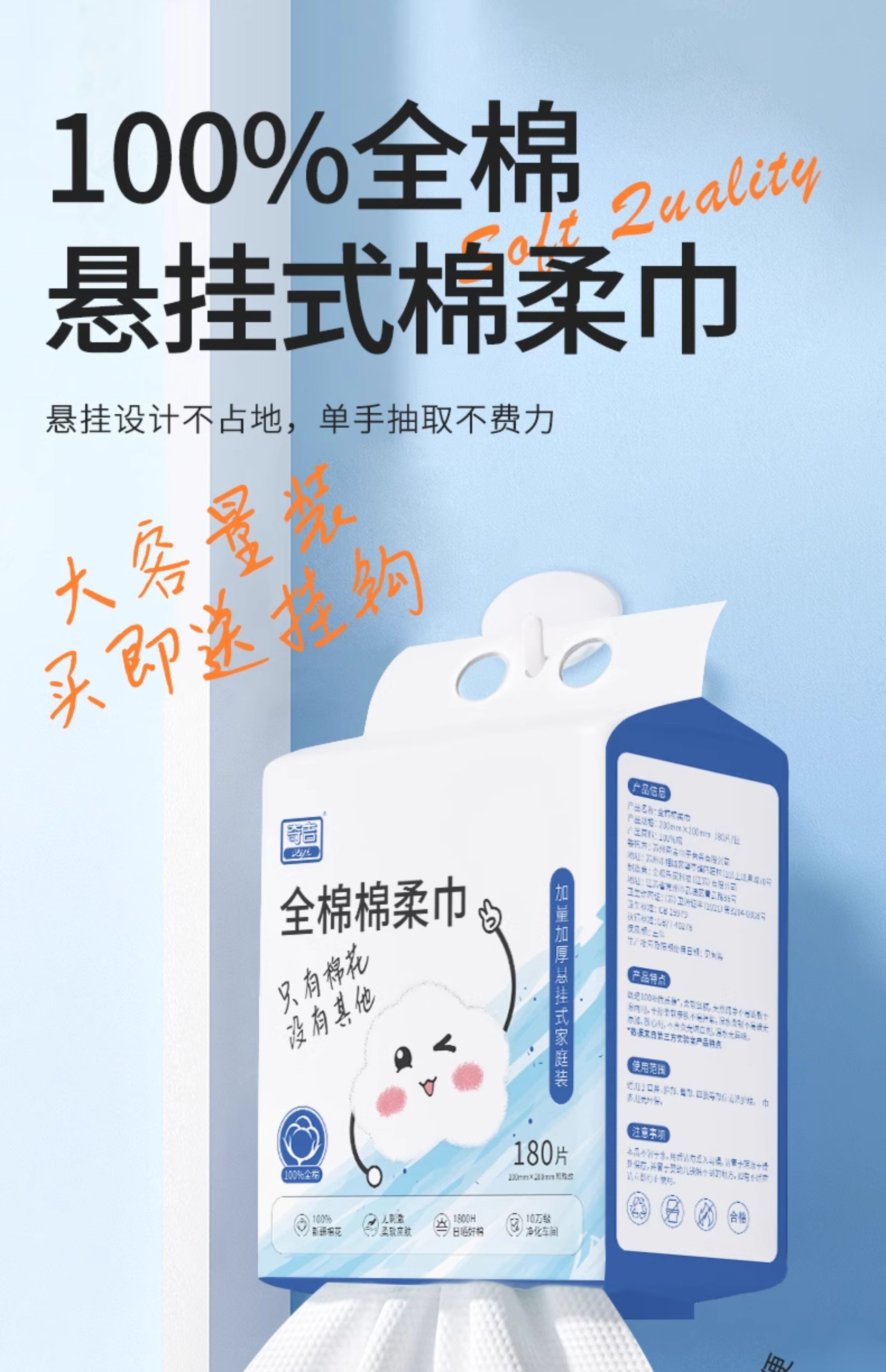 奇吉100%棉洗脸巾壁挂式纯棉悬挂式棉柔巾加厚加大婴儿全棉洁面巾
