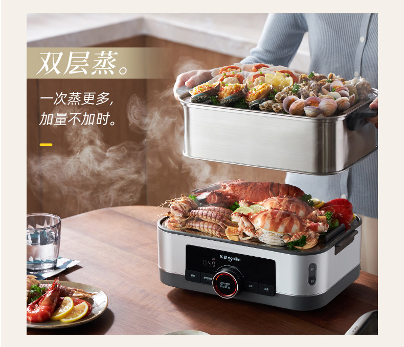 东菱电蒸锅蒸汽锅家用多功能早餐机蒸炖一体锅蒸箱多层不锈钢蒸笼