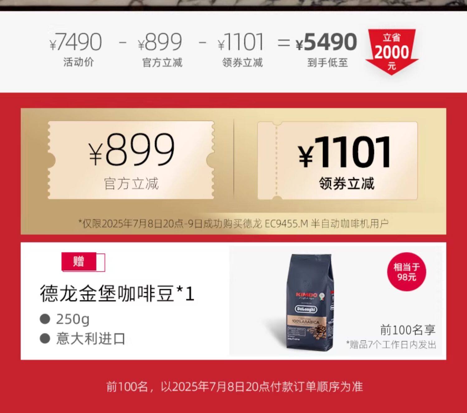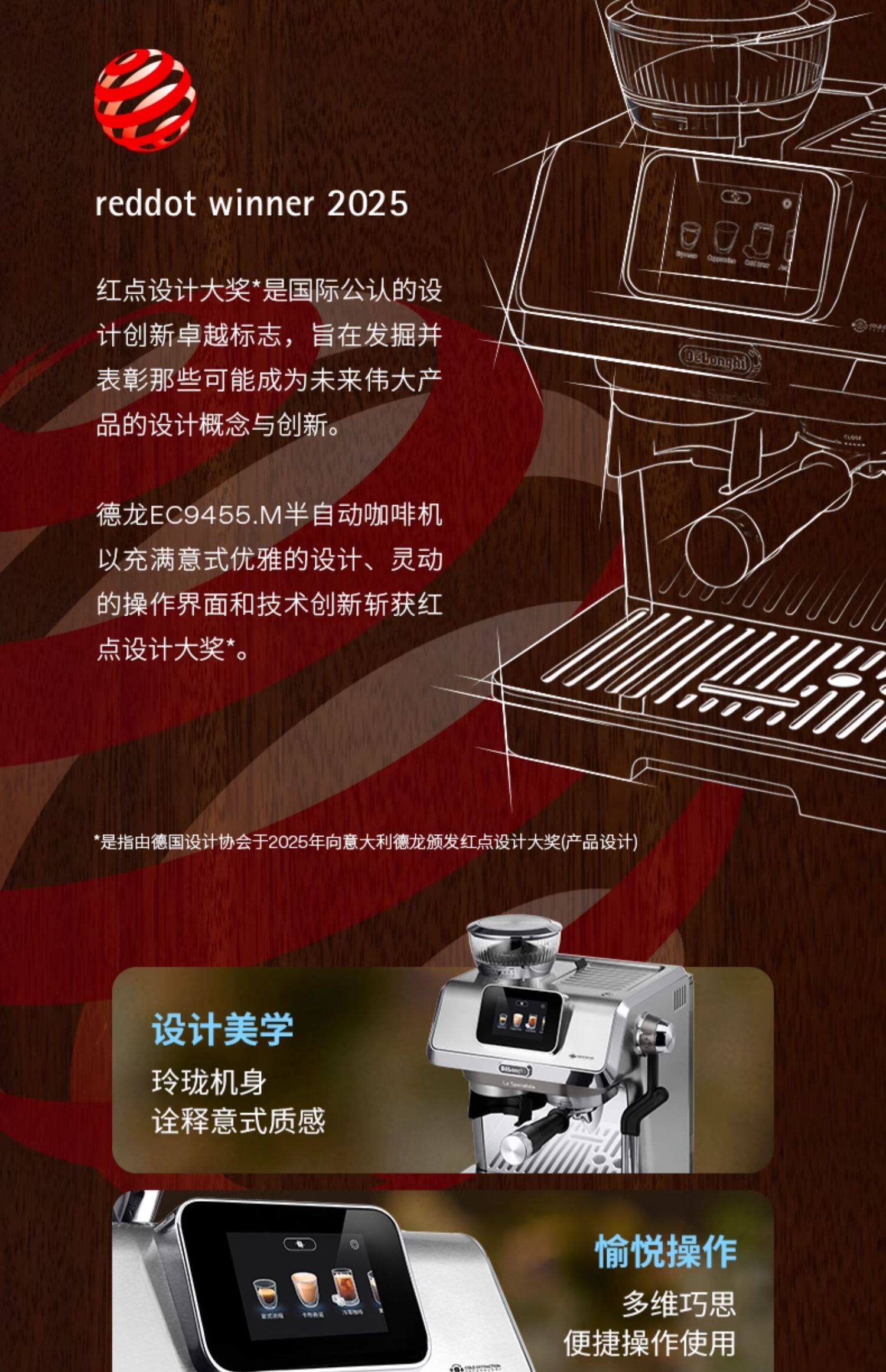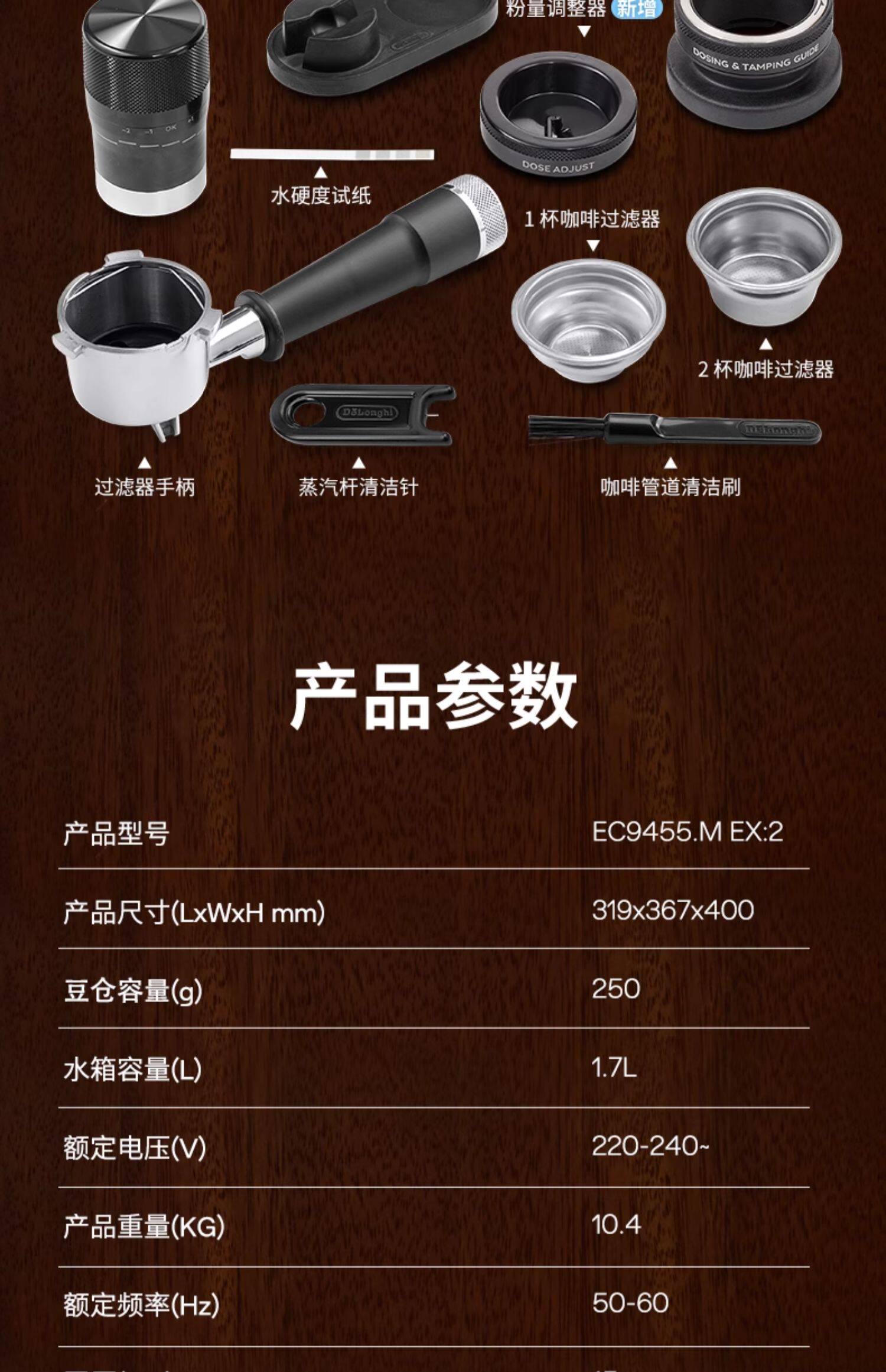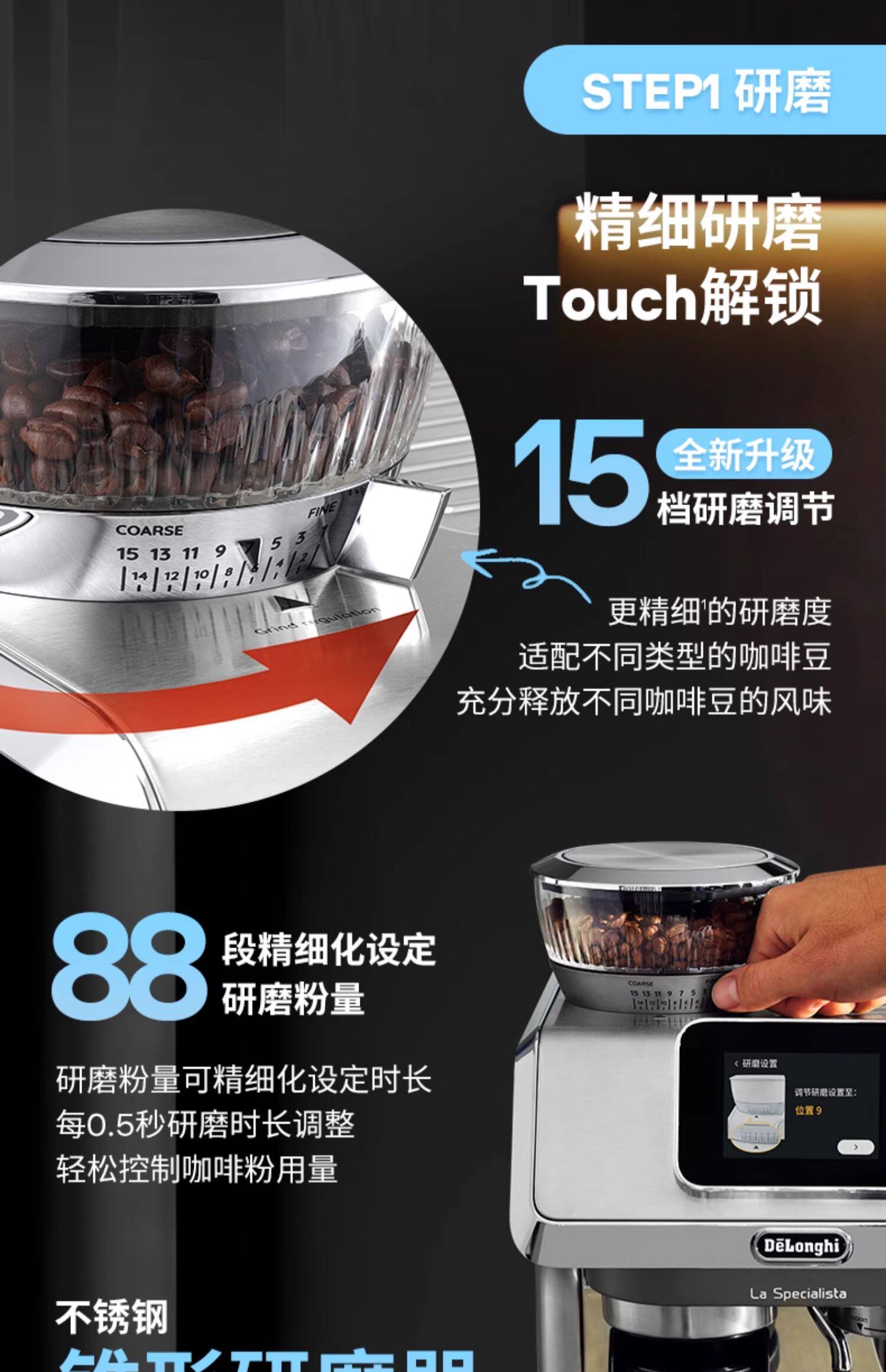 delonghi德龙TOUCH EC9455半自动咖啡机研磨一体意式家用
