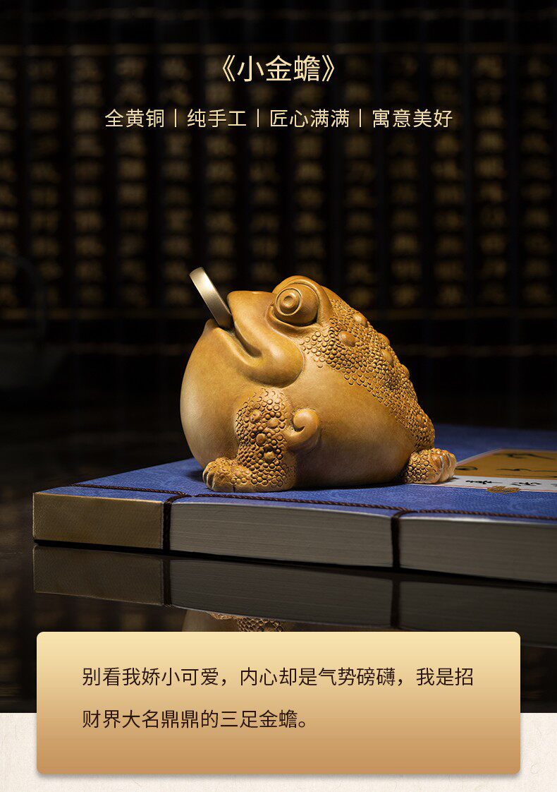 铜师傅黄铜三足金蟾摆件铜工艺品客厅桌面办公室摆饰新店开业礼品
